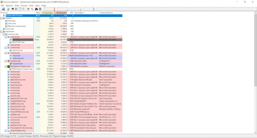 It would be hard to perform reverse engineering without programs from Sysinternals that monitor how applications access the filesystem and processes. ProcessExplorer shows all processes in a hierarchical tree view, so you can easily see their spawning order. You can also see which dynamic libraries they use, as well as their priority, digital signatures, processor usage and much more.