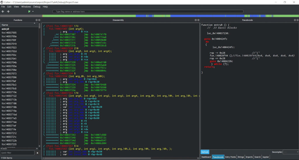 Radare is a set of console tools including a debugger, disassembler, decompiler, hex editor, its own compiler, utility for comparing binary files and much more. There is also a GUI addon named Cutter that greatly improves the look and usability of Radare’s framework.