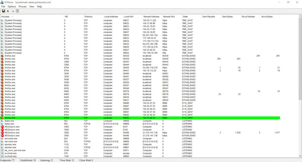 A small program for monitoring an application’s network activity. You can see which ports it accesses (both local and remote), together with protocols, process identifiers and transmitted packet counters. Overall, this is one of the most useful tools for any hacker!