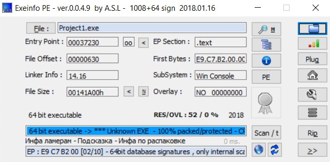 This is another packer and protector detector. It has an unconventional interface that will not be to everybody’s taste. On the other hand, the program is frequently updated, offers numerous interesting functions and user-friendly tips for unpacking.