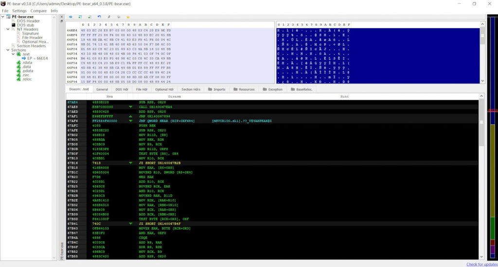 PE-bear has a user-friendly UI and file-comparing utility. The program’s only downside, despite its open source code, are its rare updates. So, if you find a bug, you can fix it yourself.